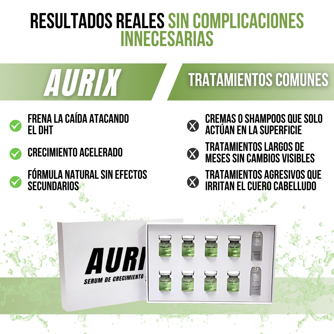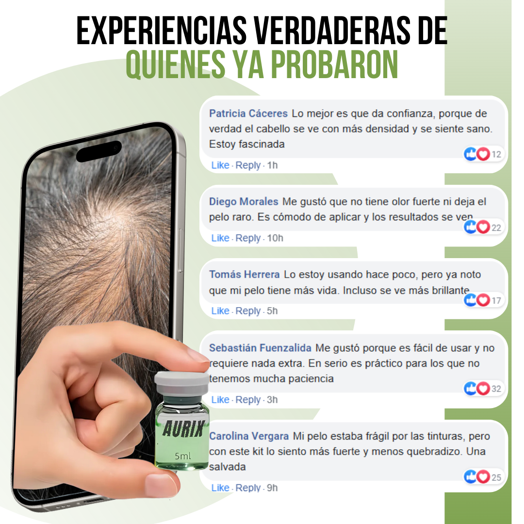 No importa si tu cabello ha perdido densidad por la edad, estrés o tratamientos agresivos, AURIX™ actúa directamente sobre el problema, brindándote resultados visibles y duraderos.