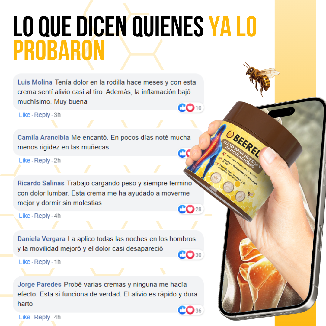 Personas con artritis, artrosis, lesiones antiguas o desgaste de cartílago destacan su efecto real, constante y sin ardor. BeeRelief™ es recomendada por quienes buscan una solución natural y efectiva, sin recurrir a pastillas agresivas ni tratamientos invasivos.