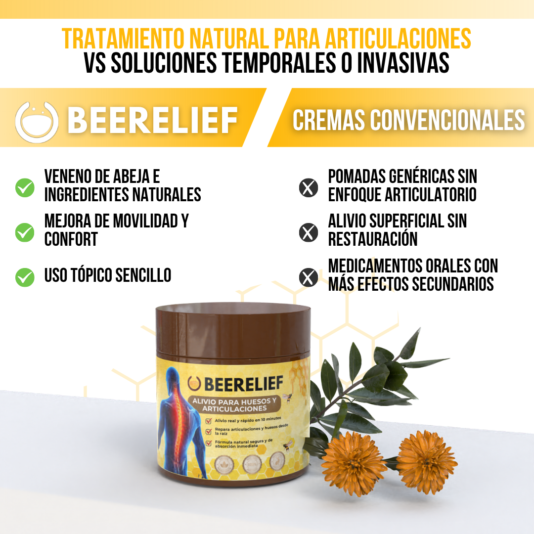 La mayoría de las cremas analgésicas solo adormecen la piel con mentol o lidocaína, por lo que el dolor siempre regresa. BeeRelief™ funciona en tres niveles: