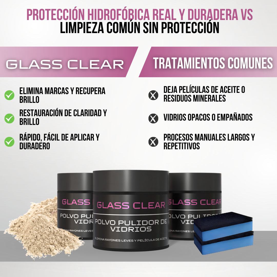 Muchos productos solo limpian superficialmente, pero Glass Clear™ restaura, pule y protege en un solo paso. Su base de óxido de cerio es utilizada incluso en procesos profesionales de pulido de vidrio. Además, no requiere maquinaria especializada, lo que lo hace accesible para cualquier persona. Aporta resultados visibles sin recurrir a cambios costosos de vidrio. Es una solución efectiva, práctica y económica, superior a los limpiadores tradicionales.