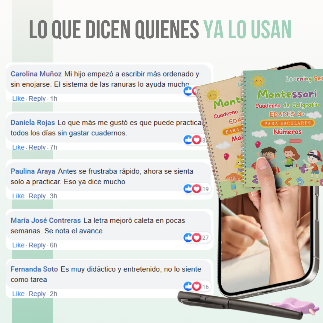 Muchos comentan que sus hijos practican solos y con entusiasmo. Se valora especialmente que no haya desperdicio de papel. Profesores lo recomiendan como apoyo escolar en casa. También es muy bien evaluado como regalo educativo.