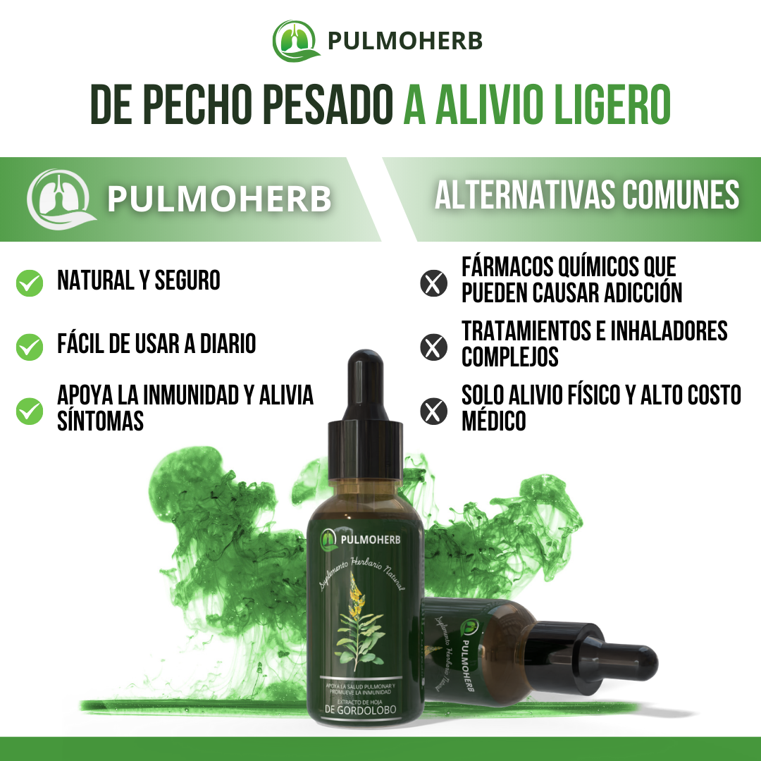 A diferencia de los tratamientos genéricos que a menudo son costosos, invasivos o contienen químicos agresivos, PulmoHerb™ ofrece resultados efectivos con su esencia natural de las hojas de gordolobo, repleto de flavonoides beneficiosos, que permite un tratamiento seguro y cómodo en la privacidad de tu hogar.