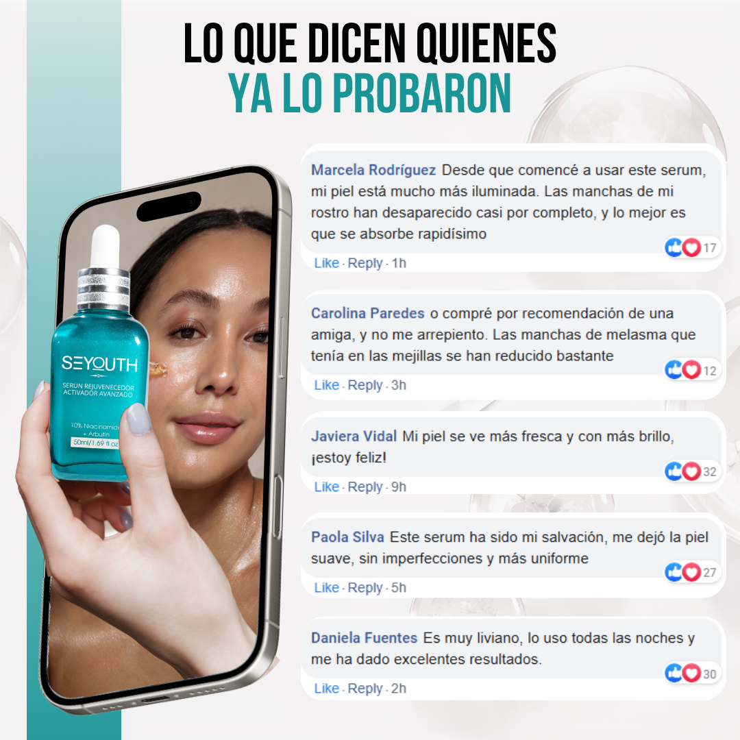 Además, la textura ligera y la rápida absorción son aspectos muy valorados por los usuarios, ya que no dejan residuos pegajosos. Recomendado por quienes lo usan, SEYOUTH™ se ha convertido en el producto esencial para quienes desean lograr una piel más radiante, firme y rejuvenecida.