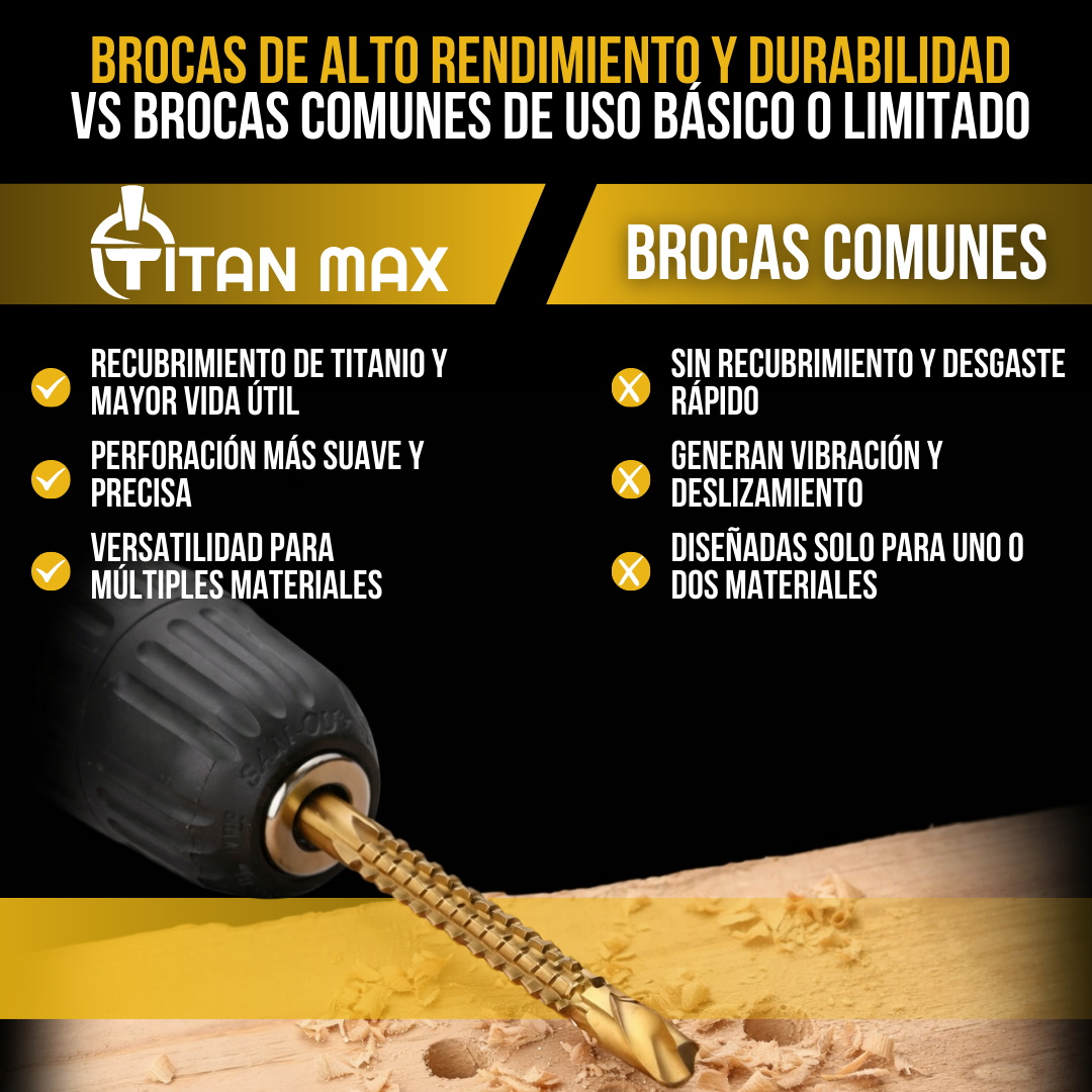A diferencia de brocas comunes, Titan Max™ combina diseño dentado, acero HSS de calidad y recubrimiento de titanio en un solo set. Esto permite cortes más rápidos, precisos y sin rebabas, reduciendo errores y retrabajos. Su versatilidad evita comprar múltiples brocas para distintos materiales. Además, ofrece una vida útil superior, lo que se traduce en ahorro a largo plazo. Una herramienta confiable y eficiente, pensada para quienes buscan resultados profesionales.