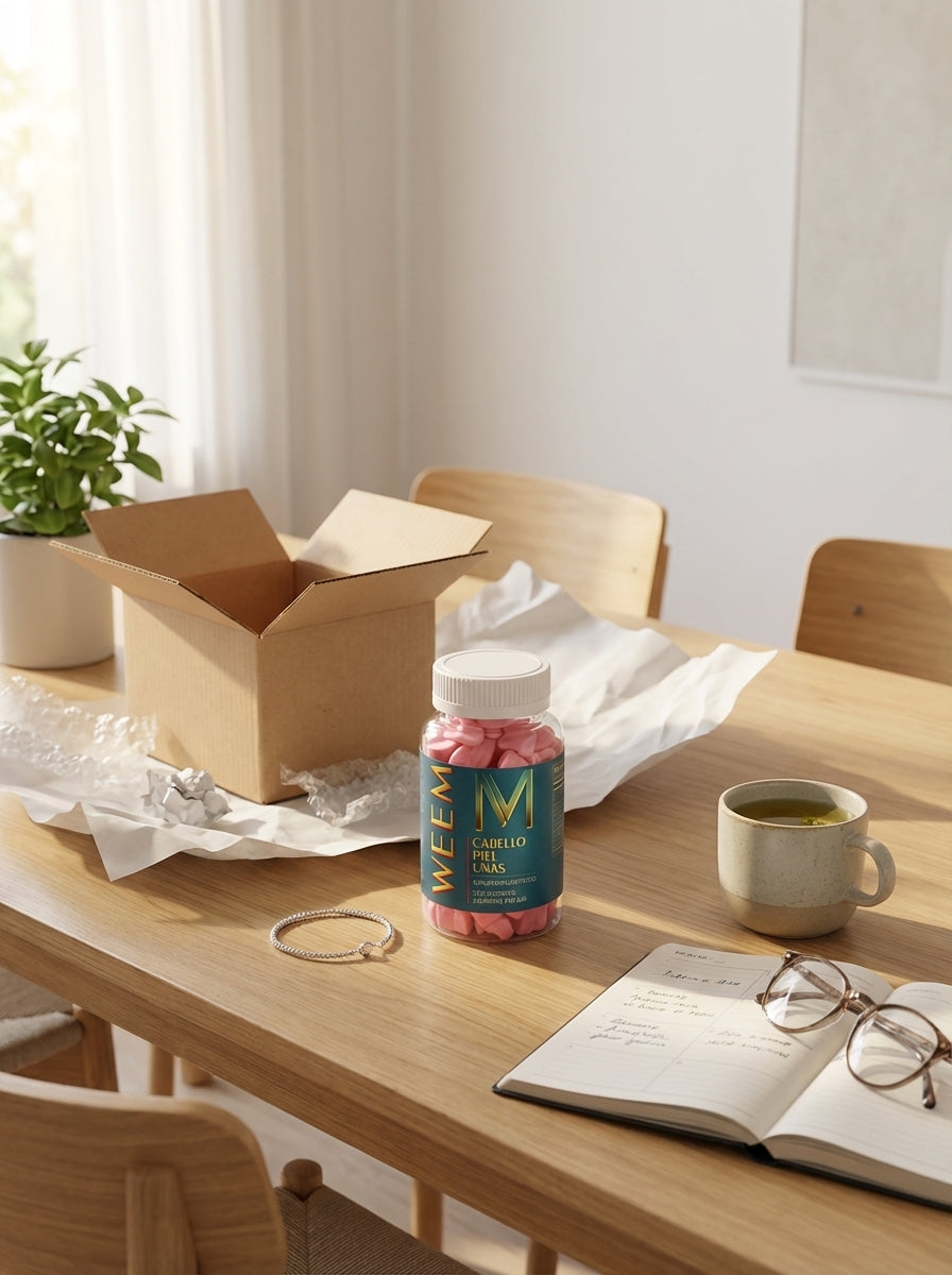 - Tomas las gomitas diario — los nutrientes llegan al folículo por el torrente sanguíneo.
