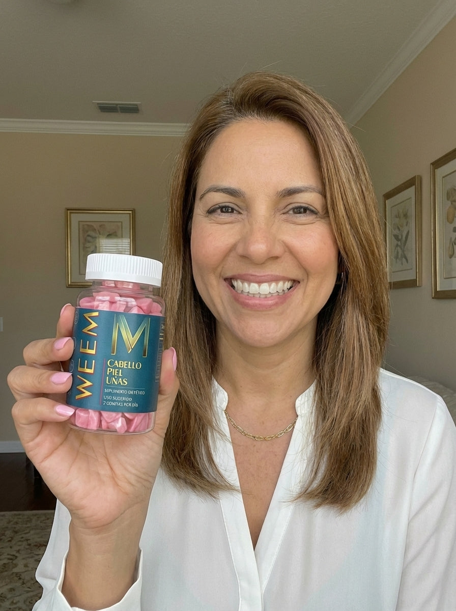 - ❌ Biotina sola de farmacia (Cruz Verde, Salcobrand, Ahumada):Problema: tiene 1 ingrediente de 8. Sin Zinc no puede convertirse en queratina. Se desperdicia.Por qué Weem™ es diferente: la biotina aquí viene con los 7 cofactores que necesita para funcionar de verdad.